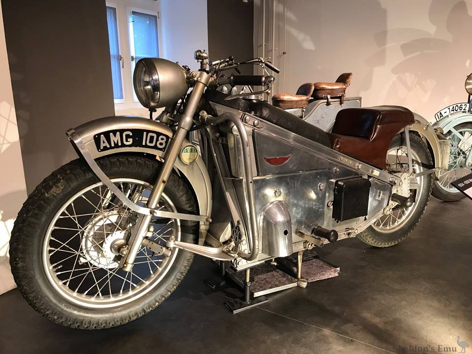 Designed by Laurie Jenks of Croydon in 1933, only four were built using Scott water-cooled two-stroke twin-cylinder engines housed in an aluminium frame, and fully enclosed aluminium bodywork. Mudguards were nickel plated. Jenks had plans to develop a three-cylinder einspurauto version.