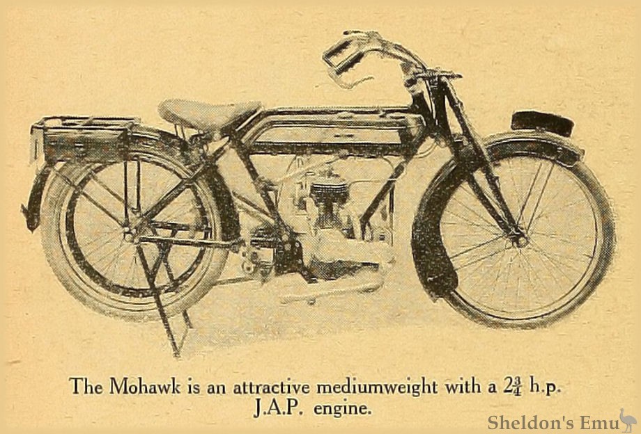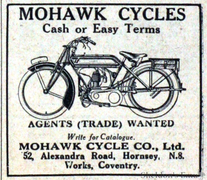 The Mohawk Cycle Co produced motorcycles from 1903 to 1904 at Chalk Farm, London, and from 1922 to 1925 in Hornsey, London.