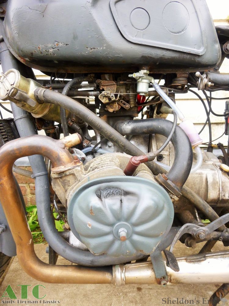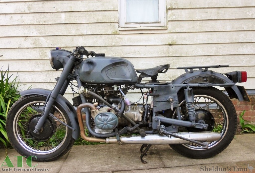 1981 Model Intruder 340cc single cylinder twostroke, Hella 12v electrics, optional mag wheels. Drum brakes front and rear. Possibly a modified IZH, and appears to be a twin despite advertising literature stating that it's a single.