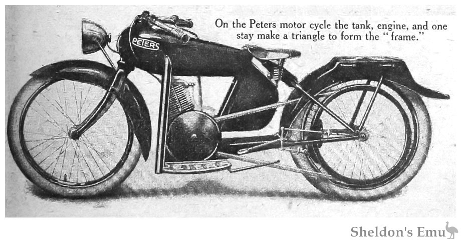 On the Peters motor cycle the tank, engine and one stay make a triangle to form the "frame".