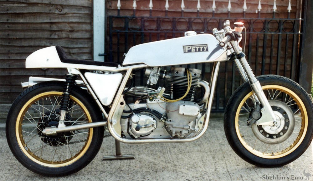 During the 1970's Ray Petty and Harry Carter built a racing special utilising a 750cc Weslake twin cylinder engine housed in a Petty-built chassis. The machine, producing approximately 74bhp, was raced by Harry Carter's son during these years.