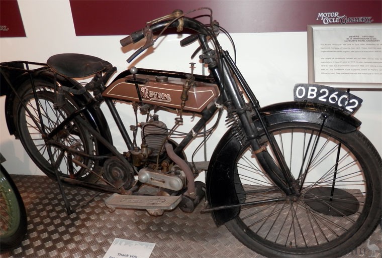 The Revere was produced by W. H. Whitehouse and Co of Friars Road, Coventry, in 1915 and from 1919 to 1922. Whitehouse was previously a works manager at the Premier Cycle Company. The motorcycles are believed to have been manufactured by Sparkbrook in Coventry and rebadged.