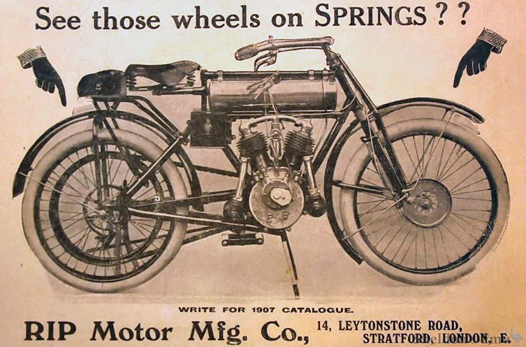 The Rip Motor Cycle Company based at 14, Leytonstone Road Stratford, London, produced motorcycles between 1906 and 1907.