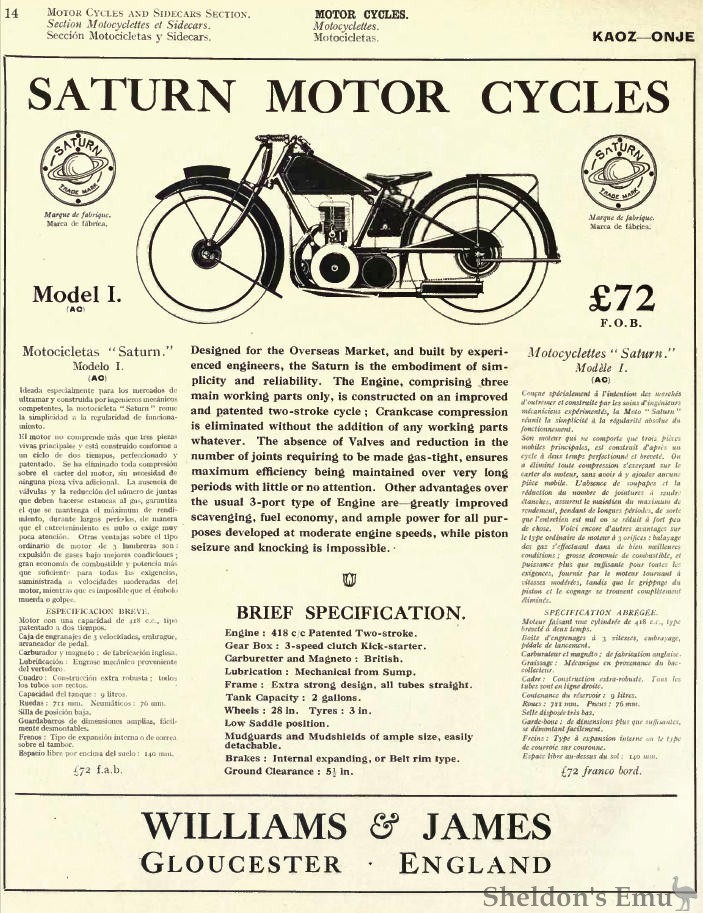 Saturn motorcycles were built by Williams & James of Gloucester in the early to mid 1920s. [1]