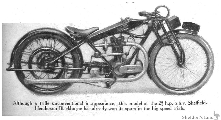 Although a trifle unconventional in appearance, this model of the 2¾ h.p. o.h.v. Sheffleld-Henderson-Biackburne has already won its spurs in the big speed trials.