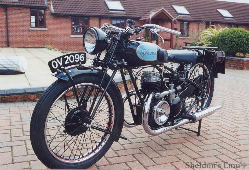 SOS motorcycles were produced from 1927 to 1939 by Len Vale-Onslow, who built his first machines in Hallow, near Worcester, before moving production to Birmingham and finally passing the company into the hands of Tommy Meeten, a famous rider who had competed in the TT and the International Six Day Trial (ISDT), and who had also established a series of world speed and endurance records on two-stroke motorcycles at the Brooklands circuit.