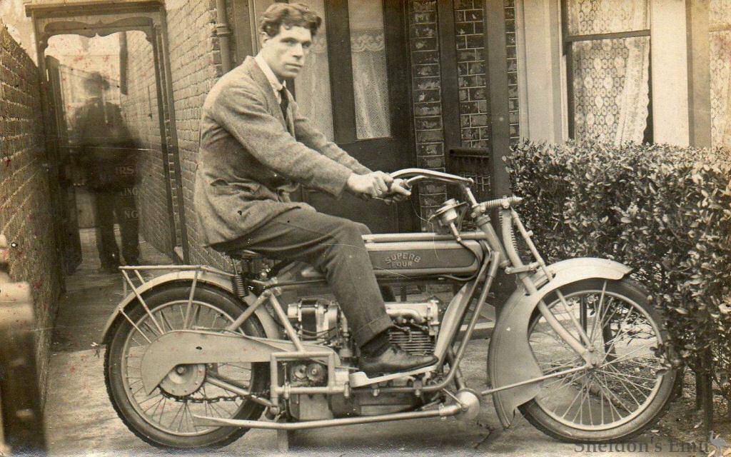 A diferencia de los estadounidenses (y los belgas también) los británicos fueron reacios a instalar motores de cuatro cilindros en línea en sus motocicletas. La Wilkinson TCM fue una de las pocas excepciones y se fabricó entre 1911 y 1916 hasta que la Primera Guerra Mundial truncara su producción. Posteriormente, en el Olympia Show de 1920 se presentó la Superb Four, una cuatro en línea con un avanzado diseño del ingeniero William Frederick Hooper que, entre otras características, y siguiendo las tendencia de los aeromotores utilizaba aluminio para la fundición del monobloque de cilindros, que incluía la mitad superior del cárter, y una carcasa de aluminio encerraba completamente el árbol de levas a la cabeza y el mecanismo de las válvulas. Las camisas de acero estaban prensadas en los cilindros. Al retirar una serie de tuercas, la tapa de cilindros entera (incluyendo las válvulas y el mecanismo de las válvulas) se podía quitar para la descarbonización. Para una mejor refrigeración, se fundieron aletas longitudinales por encima de las tapas de las válvulas y un enfriamiento adicional se lograba con un pequeño ventilador en el extremo trasero del árbol de levas que inducía un flujo continuo de aire a lo largo del interior de la carcasa del árbol de levas desde una tubería conectada a la admisión de aire del carburador.
