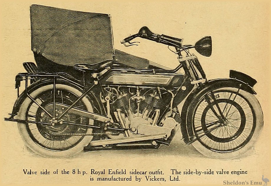 It is reported that in 1921 Vickers built a 976cc V-twin Wolseley engine to an Enfield design. The model remained in the Enfield catalogue until 1924, replaced in 1925 with a Royal Enfield engine.