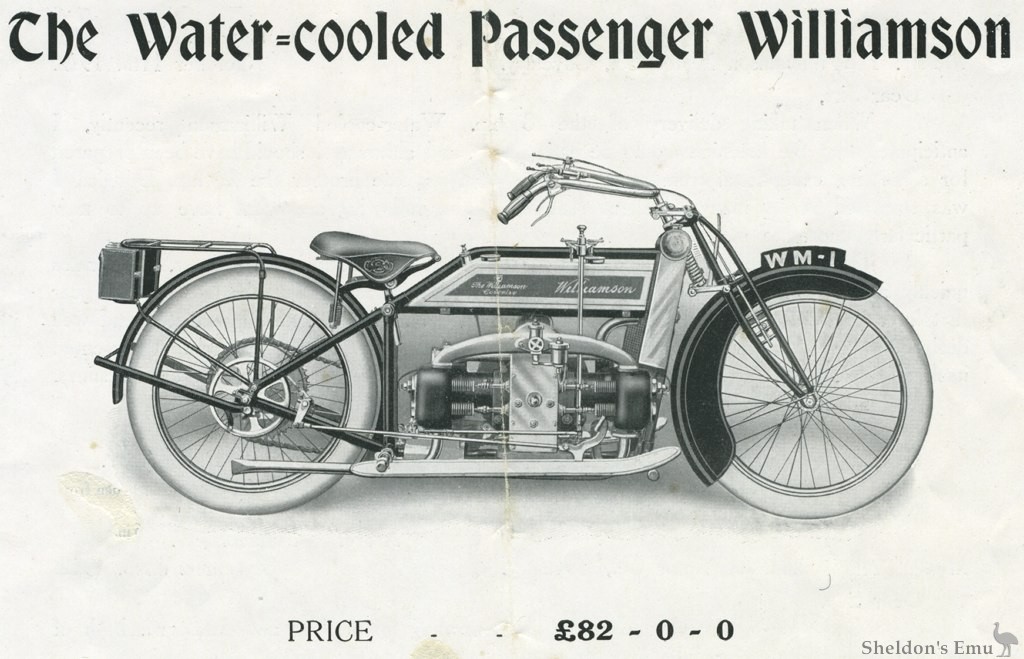 Williamson motorcycles were produced at the Cromwell Works in Earlsdon from 1912 to 1920 by William "Billy" Williamson aided by his brother Harry after they left Rex due to a dispute with the Pilkington brothers, the founders of the company. At the time Billy was managing director and Harry was sales manager. Harry moved to Singer and took up the same role there, whilst Billy set up shop in the old Clarendon Motor Works premises at 77 Moor Street Earlsdon, a five minute walk from Rex at the other end of the street. He was supported in this venture by relations who owned the Douglas concern in Bristol. William had joined the industry in 1892, working with Allard which was absorbed by Rex.