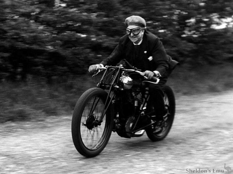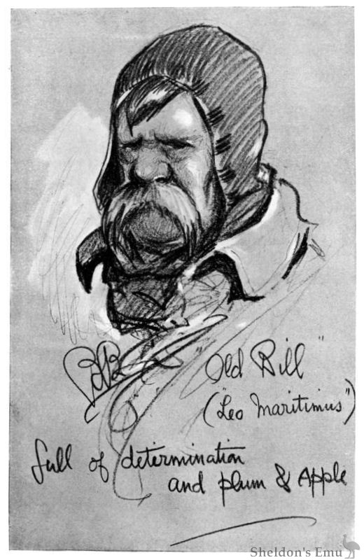 The machine was re-named 'Old Bill' by George himself after Bruce Barnsfather's cartoon character from World War One. The bike with George in the saddle won 51 sprint events in 1922/3 and in the 52nd at Clipstone in Nottinghamshire both bike and rider crossed the finish line making fastest time of the day but they were not together. Due to yet another burst tyre at more than 90mph George again crashed and suffered severe injuries which kept him in hospital for many weeks. During this time 'Old Bill' was repaired, converted to road trim and sold to help pay the wages whilst George recovered.