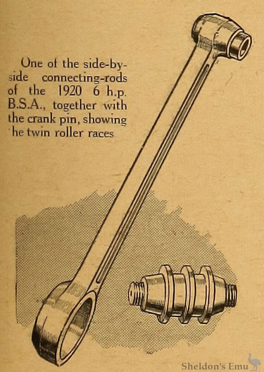 One ot the side-by-side connecting-rods of the 1920 6 h.p. B.S.A., together with the crank pin, showing the twin roller races