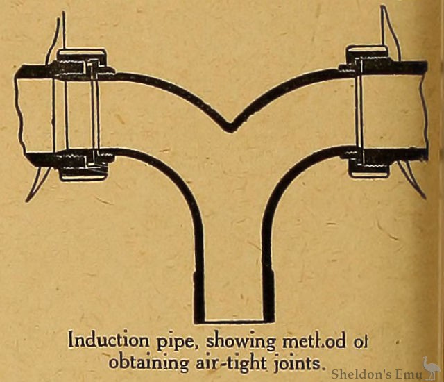 One flange is secured to the inlet port by a screwed ring and a similar fixing is utilised for the second flange, but, before this is screwed home, all chance of air leakage is avoided by the use of a special sleeve screwed into the inlet port which can be adjusted outwards to meet the flange.