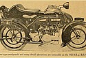 4½ h.p.; 85x98 mm. (557 c.c); single-cylinder four-stroke; side-by-side valves; drip feed lubrication; B.S.A. carburetter; M-L chain-driven magneto; three- speed constant mesh gear; chain drive; 26 x 2½ in. tyres.