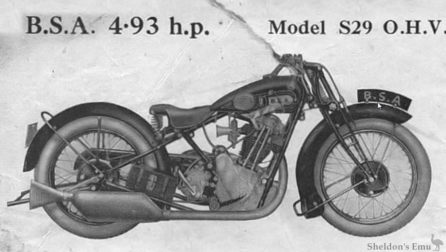 Engine. 4.93 h.p., 80 x 98 m/m bore and stroke. Enclosed roller bearing with return springs. Enclosed push rods, adjustable return springs. big end bearing, pressure oil-fed. Low compression piston standard. High compression piston can be fitted if specified. Two spare valve springs supplied.