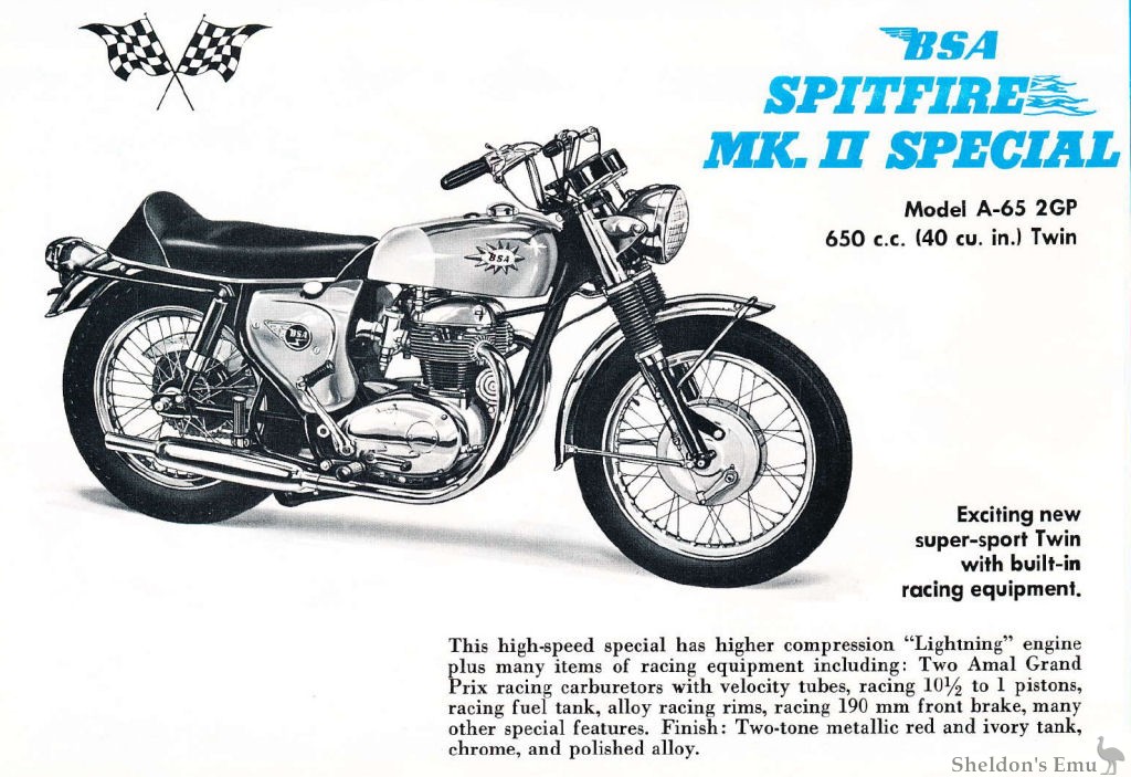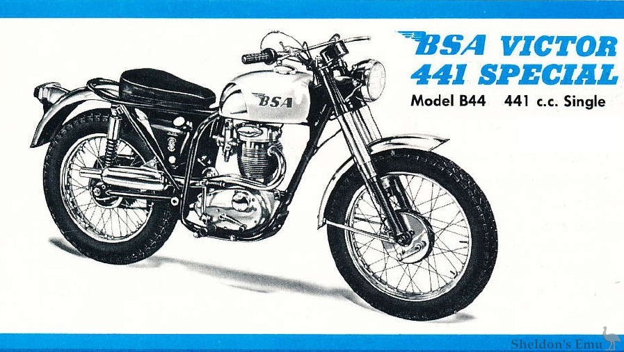 Another brand new BSA model designed to deliver top power for both road and competition. Has famous Victor engine as ridden by Jeff Smith in winning two World's Championships! A big capacity engine in a light weight frame gives fine handling, unbeatable "punch".
