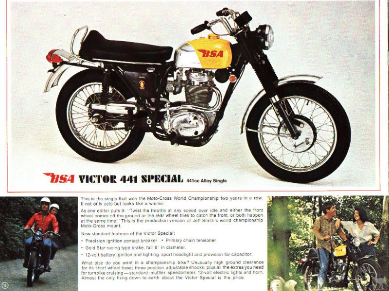 "Lean on frills, long on performance" - we quote Bob Greene, editor of HOT ROD. Bob goes on to say. "Remember the day you bolted a V8 in that model A and nailed the throttle to the wall for the first time? Well, you've got that same thrill to look forward to when you leap aboard BSA's spankin' new 441 VICTOR."