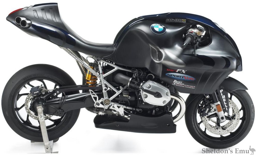 The Canjamoto Scorpion was based on a BMW R1200S, and was displayed at the 2007 Montreal Motorcycle Show. There were no gauges - all instrumentation was via a heads-up display. Bodywork was either fibreglass or carbon-fibre.