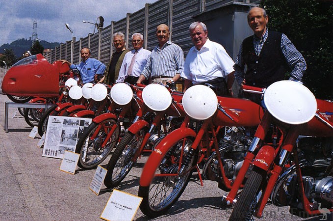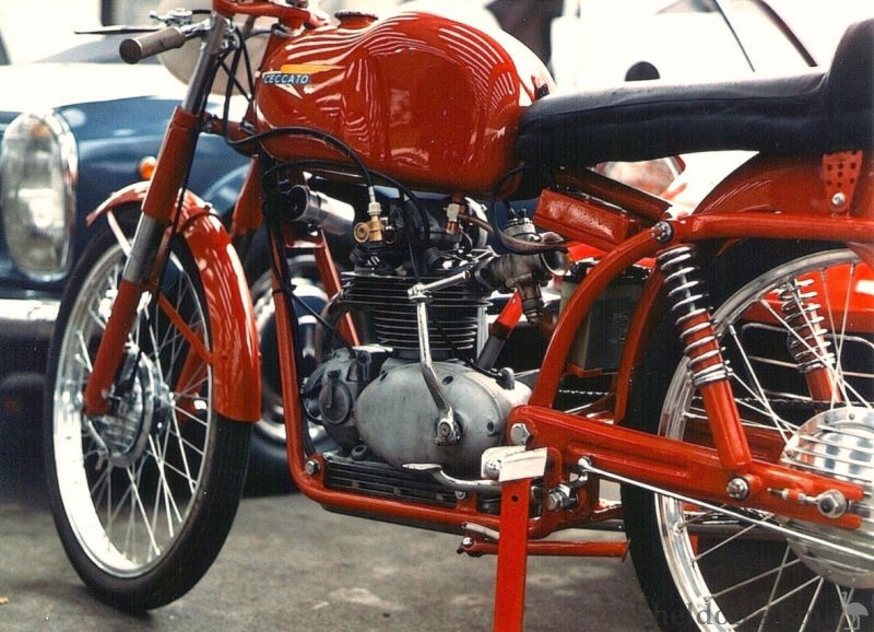 The young engineer Fabio Taglioni had just designed an interesting 75 cc ohc racing engine at Bologna's polytechnical institute. Contrary to popular belief this was his first design and not that of the 98 cc Ducati Marianna, which followed two years later. Fabio thought that he could make Count Giusseppe Boselli - head of FB Mondial - very happy with it, but because Mondial was successful in 125 cc GP racing and a 75 cc world title did not exist, he was not interested - however, Count Boselli introduced young Fabio to signor Ceccato in the summer of 1953.