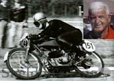 Argentina's 1959 75cc champion Teodoro Galelli. Insert: Ted, as he is called at present, enjoying life in California.