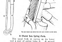 The riding position was low and comfortable, the front suspension worked perfectly and steering was at all times light and steady sans damper. Both brakes were really good, but the universal dislike of hand-lever operation of the front one was registered. Absolutely the only criticism of this thoroughbred was that the rear wheel spent rather a lot of its time off the road. The price of the solo was £80."