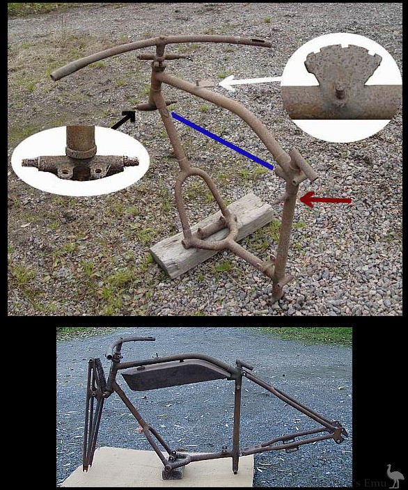 227 underneath the saddle, left side, up-down tube at welding joint and