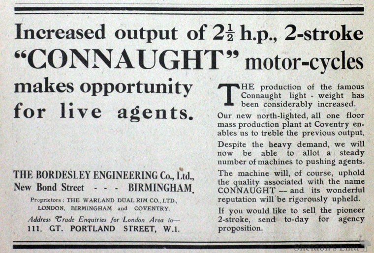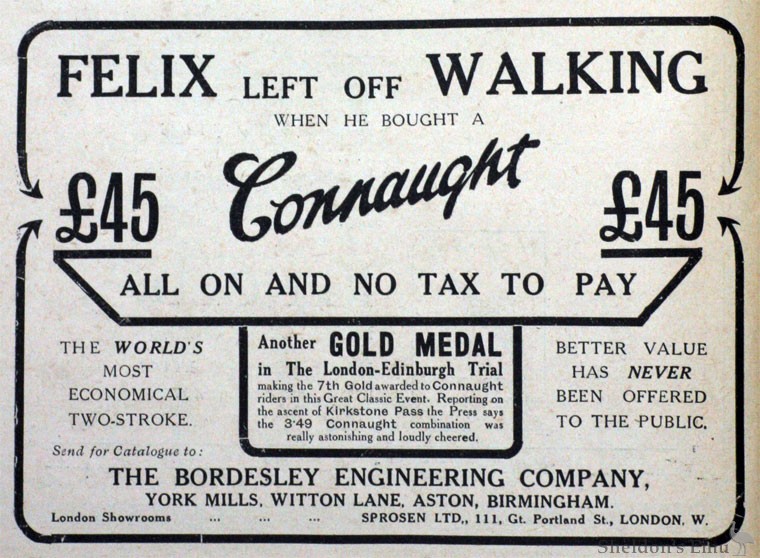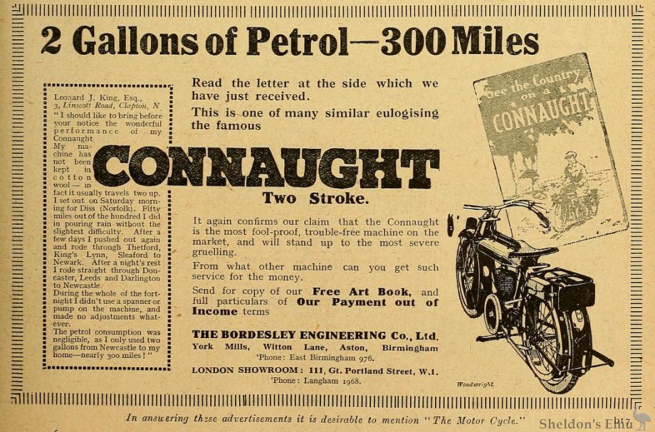 1926 They now listed two models fitted with their own engine as well as several other models with Blackburne, Bradshaw JAP units. They also built a solitary two-stroke. It was their last year of production.
