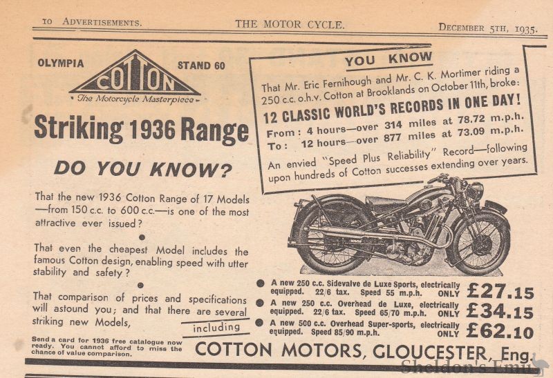 Cotton have been producing Motorcycles since 1919.