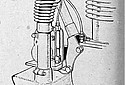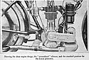 The frame is neat and strong, and distinctive because of the way in which the cradle engine plates form integral lugs with the down tubes. Modified Brampton forks, with solid links substituted for the horizontal coils, are fitted, and here, again, lugs are cast for the Webb front brake mounting and a special bracket for the baby Lucas head lamp (which will be supplied with each machine).