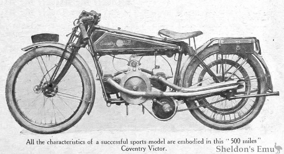All the characteristics of a successful sports model are embodied in this '500 miles' Coventry Victor.