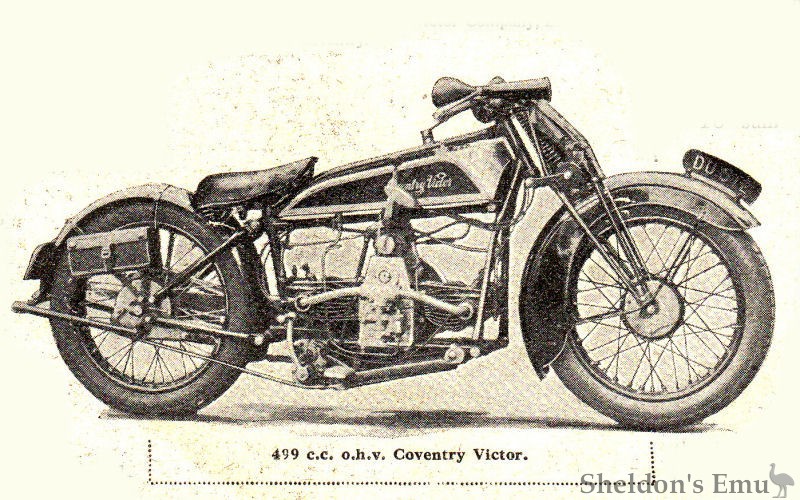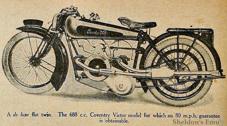 Between 1919 and 1930 Coventry-Victor, using their 688 cc flat twin engine, built motor cycle and sidecar combinations, many of which were used as commercial transport outfits.