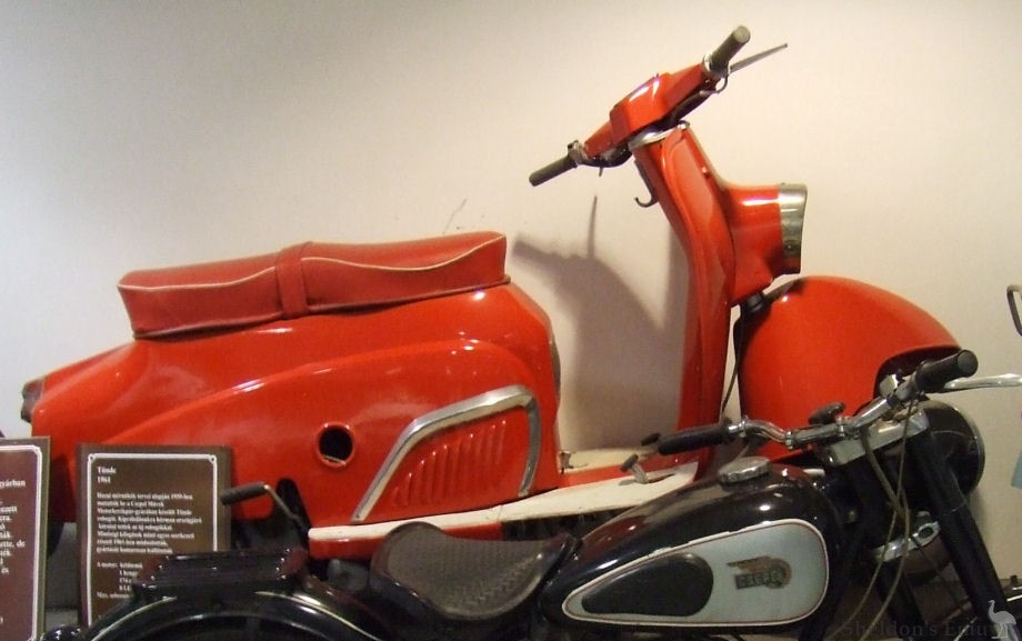 In 1959, a mere six years from conception, the machine, now a scooter, was given a name: the Tünde. The first was completed, and plans were afoot to produce 350 of them. Fifty were built.