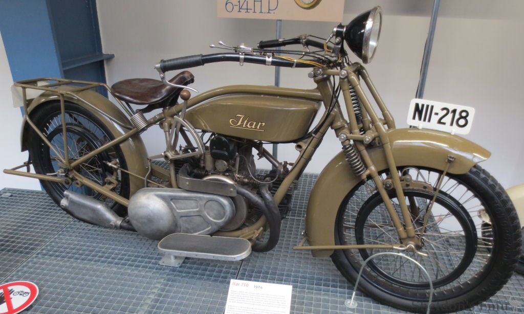 Itar 710 of 1924: 706 cm3, 14 hp, 90 km/h max speed, 170 kg weight. Boxer engine positioned longitudinally. Engine by Walter. These were often fitted with sidecars, and the engine size was later increased to 750cc.