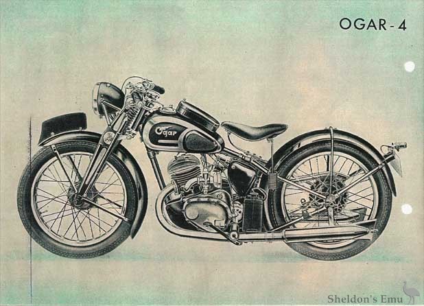In late 1935 the company introduced the Autfit OGAR-4, another 250cc machine but with four-speed transmission. 1938 saw the introduction of the 3-speed 250cc Elan. The engine on this model remained much the same as earlier versions, and it was housed in a square-section tubular frame with pressed- metal forks, Bosch electrics and an Amal carburettor. Plunger-style rear suspension was optional. Around 250 of these were produced, of which about 20 have survived.
