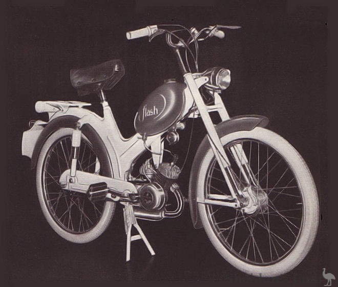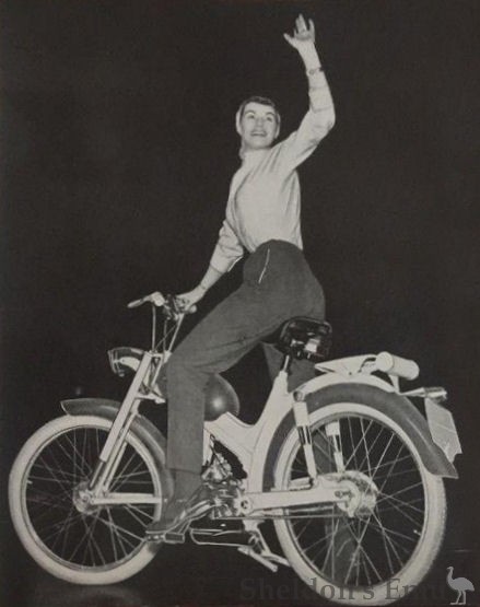 On the other hand the Swell is a true mo-ped in that it has a 50 c.c. engine with 2-speed gear and pedals. The footboards fold up to provide access to the pedals and can be kicked down again while riding.