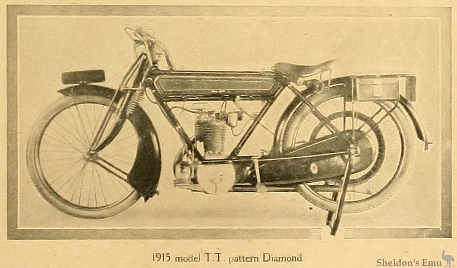 From a short run on one of the sporting models we may safely say that we have seldom ridden a machine of the same capacity winch has more life than the Diamond. It might be thought that the bevel and chain drive would produce considerable noise, but this is not the case, and the gearing was almost equally quiet on both low and high gear. The riding position is comfortable and the speed is surprising from which it will be gathered that our impressions were favorable.