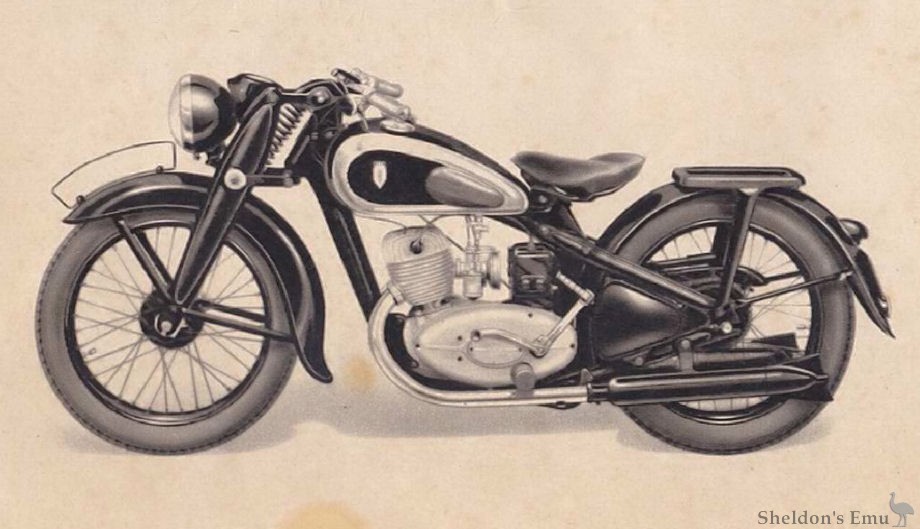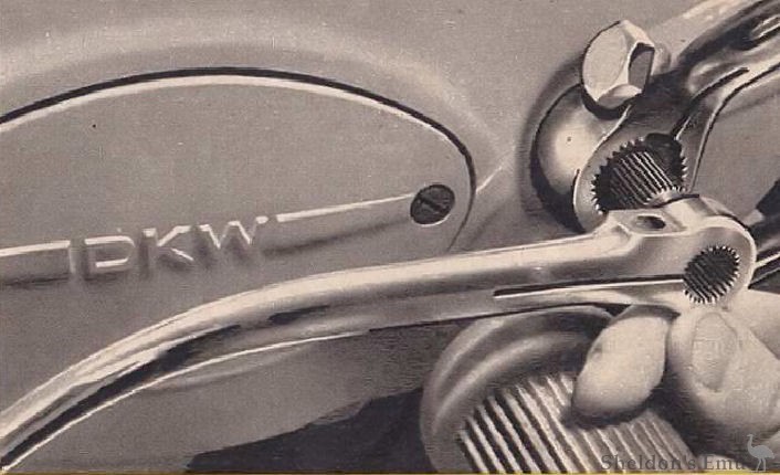But for those enthusiasts who want a light Solo machine, and who only occasionally cover long distances with a pillion rider, the NZ250 is the given machine. - Engine constructed as a unit with the 4-speed gear box, combined hand and foot gearchange, swing saddle!