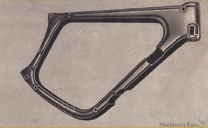 One of the outstanding features of the NZ models is the central box section frame for the first time used on any motorcycle, pioneered by DKW.