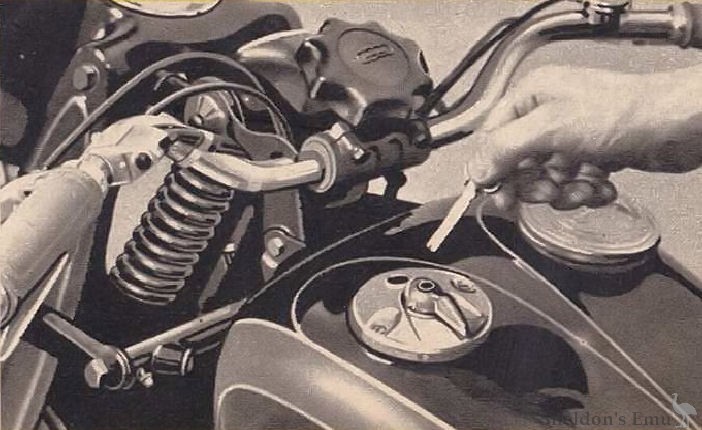 The foot gearchange lever is mounted on splines and can, therefore, be adjusted to any position, thus being always properly located for instantaneous operation.
