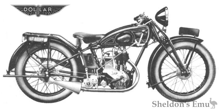 250cc SV, bore/stroke 64x76mm, Amac carburettor, magneto ignition, 3-speed. Weight 90kg, tyres 26x3.50.