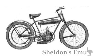 350cc SV, bore/stroke 70x90mm, Amac carburettor, magneto ignition, 3-speed. Weight 100kg, tyres 26x3.50.
