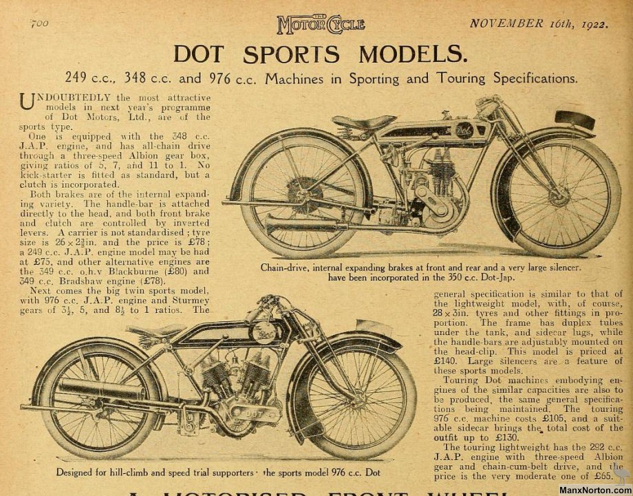 Note: After motorcycle production stopped, the firm continued their business by producing shock absorbers for cars and motorcycles under the Dot-Armstrong name.