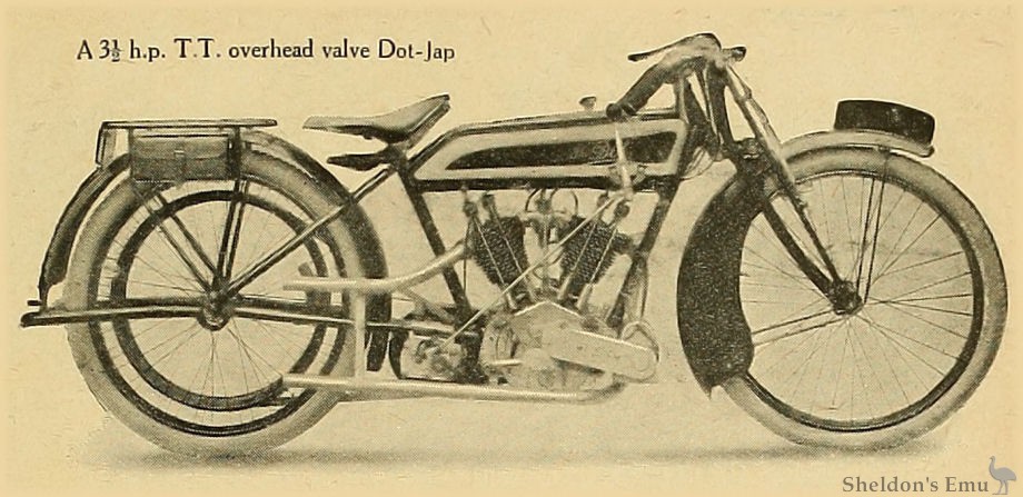 3½ h.p.; 70x64 mm. (492 c.c.); twin-cylinder four-stroke; side-by-side valves; drip feed lubrication; Amac carburetter; E. I. C. chain-driven magneto; two-speed Albion gear; chain and belt drive; Hutchinson 26x2 2¼ in. tyres. Price £120.