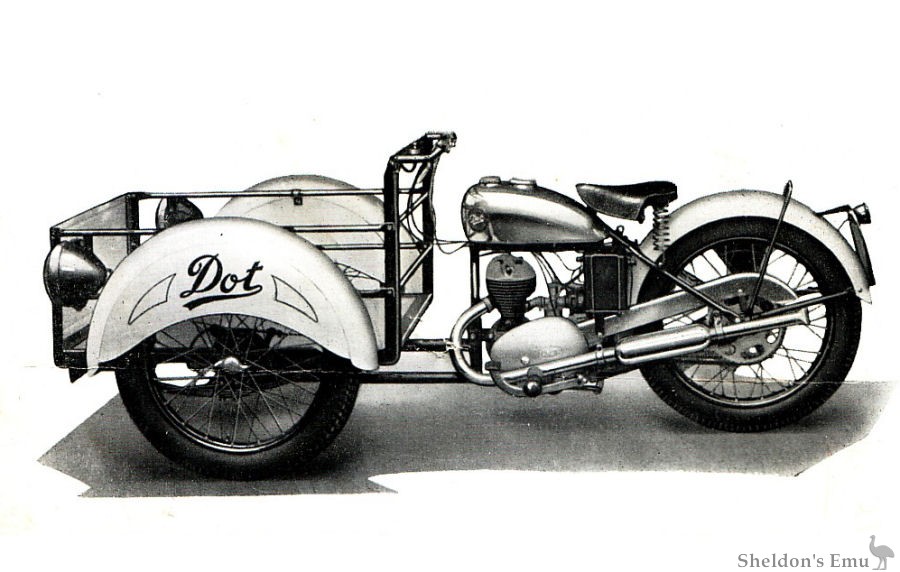 Founded by Harry Reed and built in Salford, Manchester, Dot motorcycles used Blackburne, JAP, Villiers and Bradshaw engines. The first Dot motorcycle was built in 1906. Production ceased in 1932, but the restructured company began building motorcycles again in 1949 using Villiers and later Minarelli and Sachs engines. Production included a variety of three wheelers (the Dot Motor Truck) up until the late 1950s, and some quite successful competition trials machines. After 1966 motorcycle production slowed, and the last machines were made in 1975.