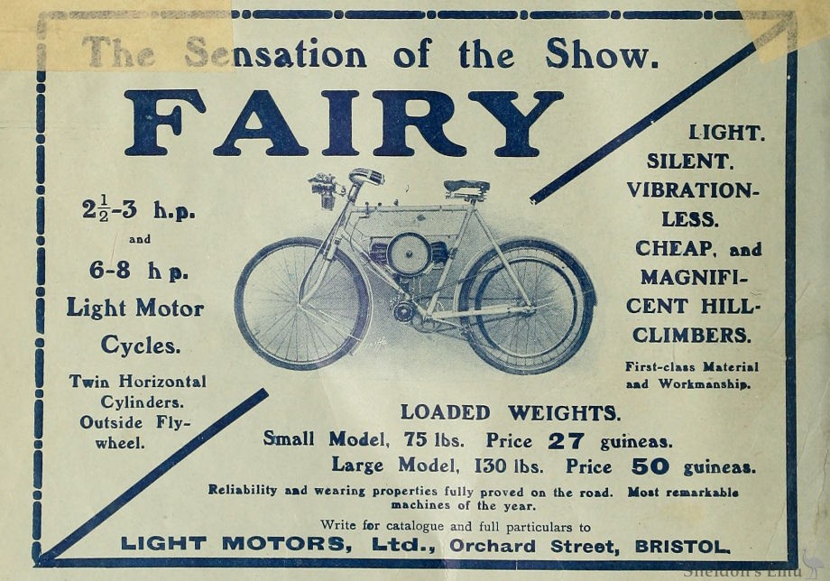 A very short article in The Motor Cycle of May 22nd 1907 shows a machine from Light Motorcycles of "180 Gray's In...", (remainder illegible). The address corresponds with that of Joseph John Barter, so this motorcycle appears to be another variation on the Fee and Fairy machines.