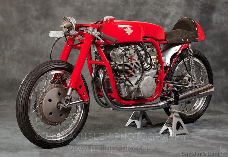 One of two bikes commissioned by Stan Hailwood for his son Mike (two 350s were also made, the first for Ken Kavanagh and the second for Hailwood). Hailwood raced the bike in 1960 & '61 before the bikes were sold to John Surtees in '61 (he also bought both the 350s). The bike never handled well and had several different frames made for it. It is seen here in its final form with a Ken Sprayson designed frame.