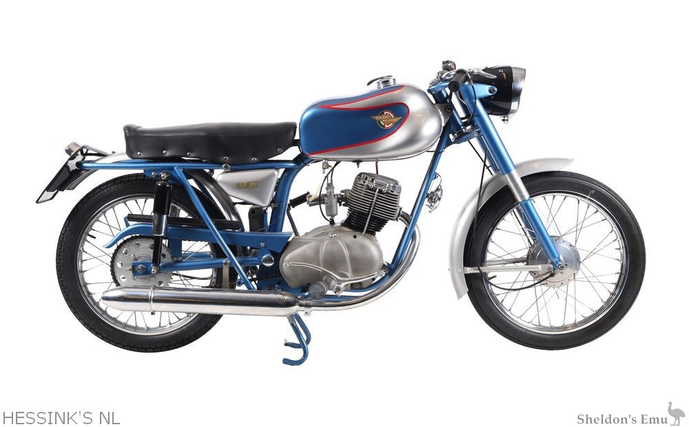 Ducati Meccanica was one of many Italian companies that did well in the 1950s with the production of sporty lightweight motorcycles, such as the Ducati 98, 98N, 98T, 98TL, 98 Sport (98S) and 98 Super Sport (98SS). These were single-cylinder OHV engines with pressed steel 'open cradle' frames, which were produced between 1952 to 1958. The '98 Sport' was sold in London in 1956 for £178.10.