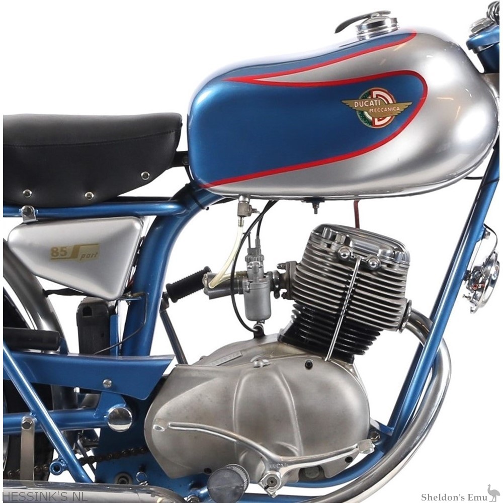 The Ducati '85 Sport' was developed by engineer Renzo Neri at Ducati Meccanica. It was one of a series of Ducati entry-level models in the late 1950s. The production of the Ducati '85 Sport' lasted only three years, from 1958 to 1960 and was not hugely popular with its target audience, most likely due to the relatively low power developed by the four-stroke engine..