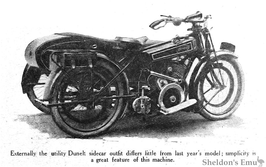 Externally the utility Dunelt sidecar outfit differs little from last year's model; simplicity is a great feature of this machine.