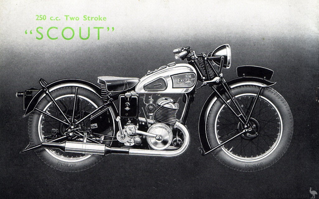 ENGINE - Villiers two-stroke, two-port. 63 mm. bore x 80 mm. stroke, 249 c.c. Long stroke, developing 10 b.h.p. Detachable aluminium alloy cylinder head. Aluminium alloy piston with inertia rings. Automatic system of lubrication with sight feed regulator. Full roller big end bearing. Extra long bronze gas-tight main bearing. Twin exhaust pipes and two large expansion chambers, chromium plated.