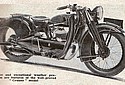 Channel-steel members are used in the frame, which has a heavy stamped heading. The petrol tank is finished in black and chromium, and a wide-nosed soft-top saddle is fitted. A de luxe model with dynamo lighting is also shown.